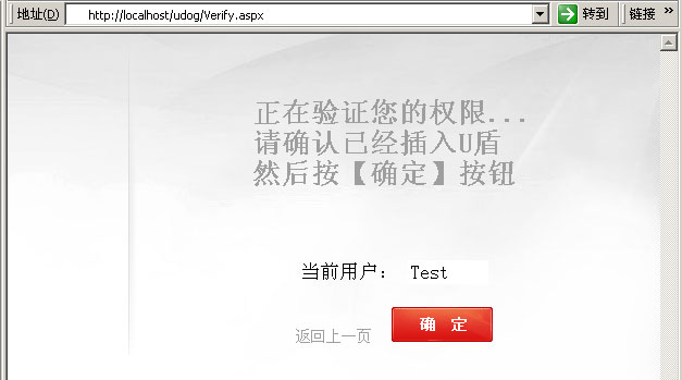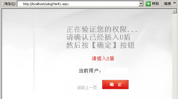 有些网站需要在后台管理界面操作某个特定功能时验证是否插入U盾,如下图,比如某网站当需要上传文件时会出现提示框,当U盾插入正常,则直接点击确定按钮完成文件上传操作;如果U盾未插入,则会提示插入后继续。