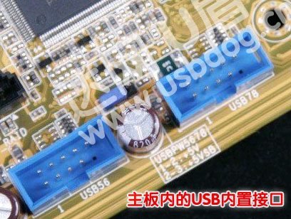 1. 打开电脑主机,找到主板上内置的USB插口,几乎所有电脑主板都会有1-2个USB内置插口,如图